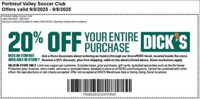 Dick's Sporting Goods discounts are available to allPVSC Players and families for gear and equipment.